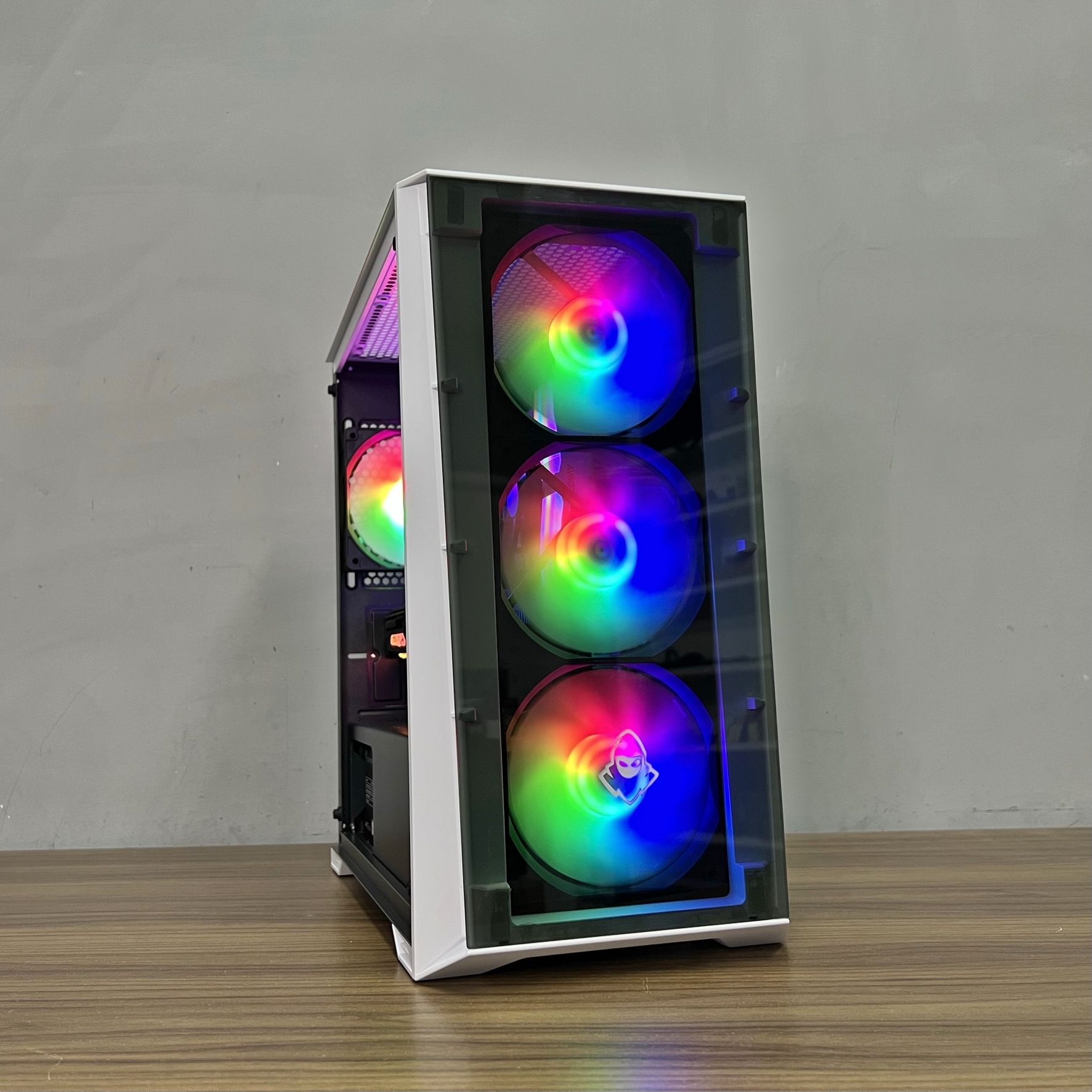 A montagem é feita por técnicos especializados, que aplicam organização impecável nos cabos, sistema de refrigeração otimizado e testes rigorosos de estabilidade e temperatura antes da entrega.