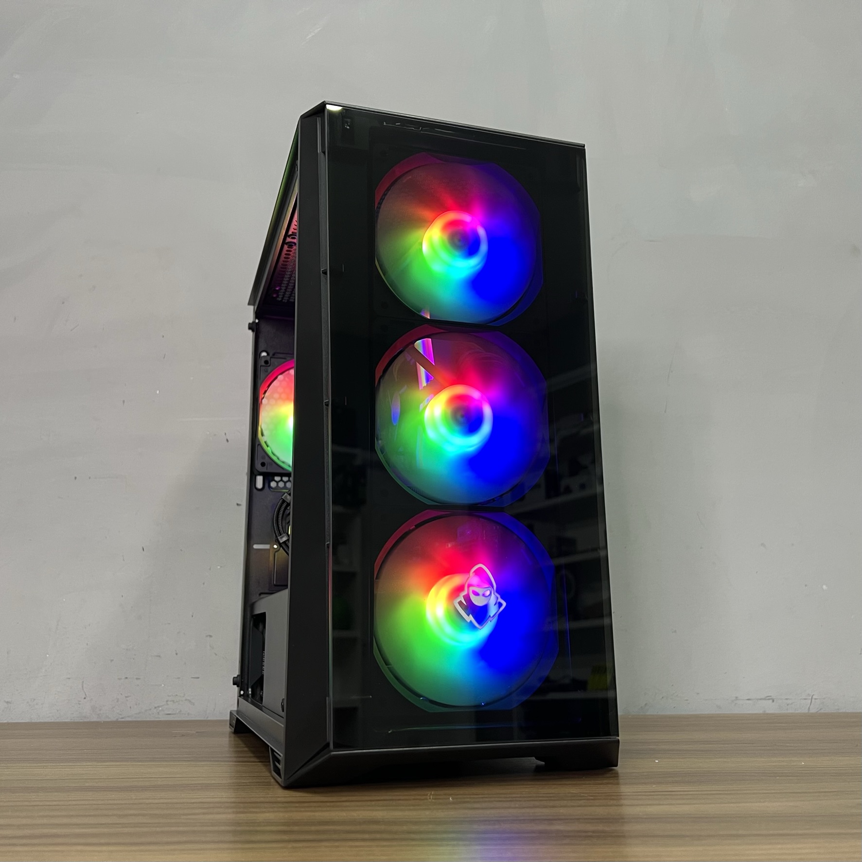 A montagem é feita por técnicos especializados, que aplicam organização impecável nos cabos, sistema de refrigeração otimizado e testes rigorosos de estabilidade e temperatura antes da entrega.