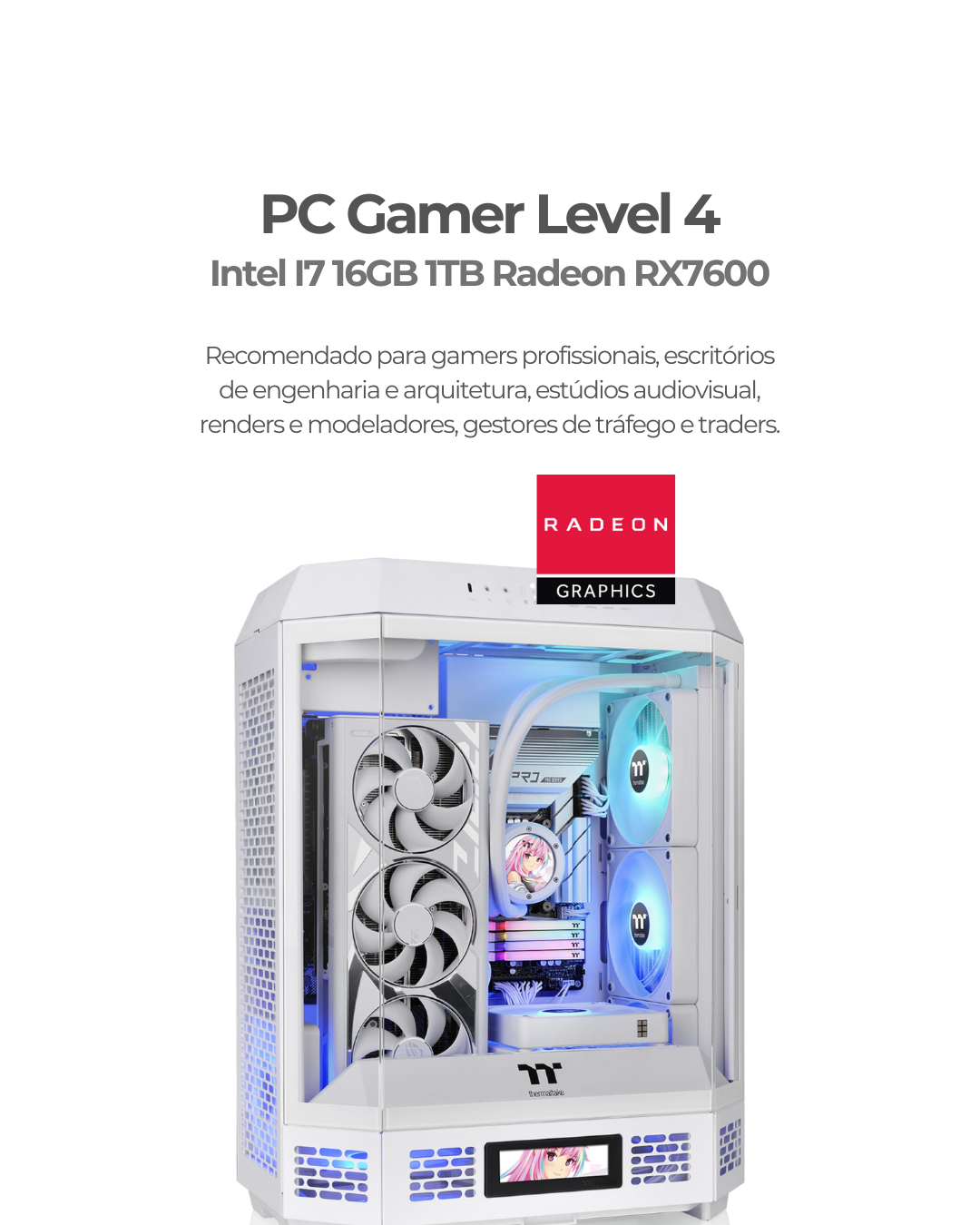 O resultado é uma máquina com acabamento profissional, silenciosa, veloz e preparada para entregar a melhor experiência gamer. seja para competir, criar conteúdo ou explorar mundos virtuais.